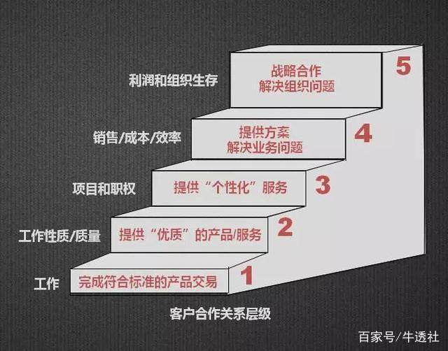 所以这是我们合作关系,你跟客户到底在什么合作关系上?五级是支撑战略未来发展,四级解决今天的问题,三级就是有一些服务,二级还不错的,一级是基本。