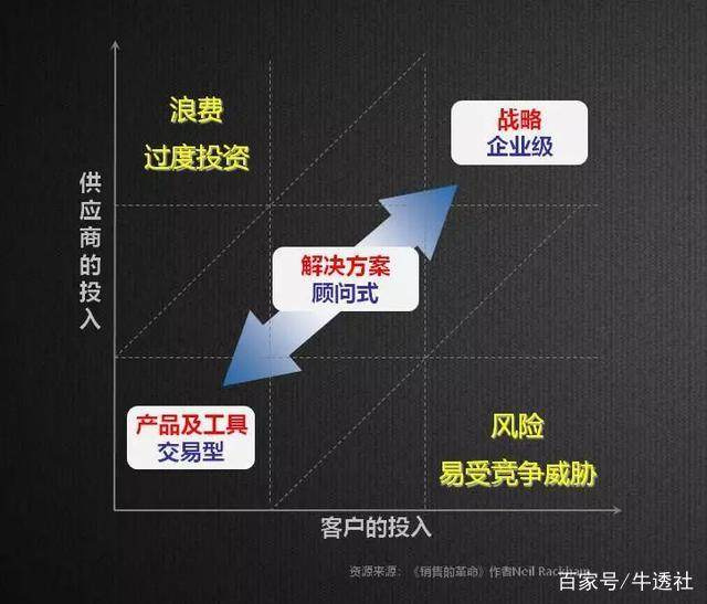 B端客户就是这样,在这种情况下,你跟客户的关系是这样的:你到底是一个产品提供商,还是一个优质产品提供商,还是个性化服务提供商,还是解决方案提供商和未来的战略伙伴?