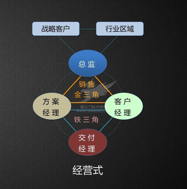 在往上如果你做战略,那么你一定会接触到公司的高层,你跟他们探讨的是未来问题。大家也做大客户,政府的大客户和企业的大客户是不一样的。企业大客户决定未来2到3年企业发展方向,政府的大客户叫做我今年怎么把所有的事撸平,头头太多了。所以高层领导、高管变革信赖这个需要深度经营。