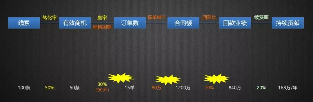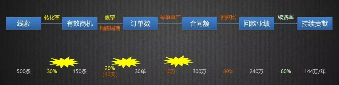 好,在这个基础上,我们一般会把它分解到客户拜访率,10个客户你见了几个,你的销售成本占比,然后你的赢单率周期,新客户比客户留存率,付费率,还有交叉销售比,平均单产,我不是都做在这。