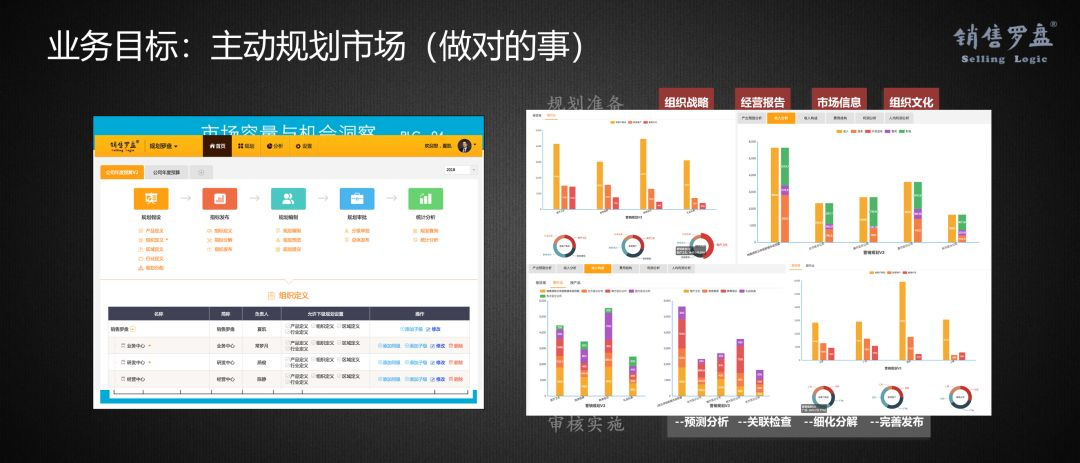 我们有一个SaaS,就叫规划罗盘,从你的组织定义、产品定义、区域定义,到你的编制,这些编制完了之后,以上的要素和分析,这个是很直观的,是哪个产品?哪个利润?不同客户的,鼠标放到这,就是它的战略。
