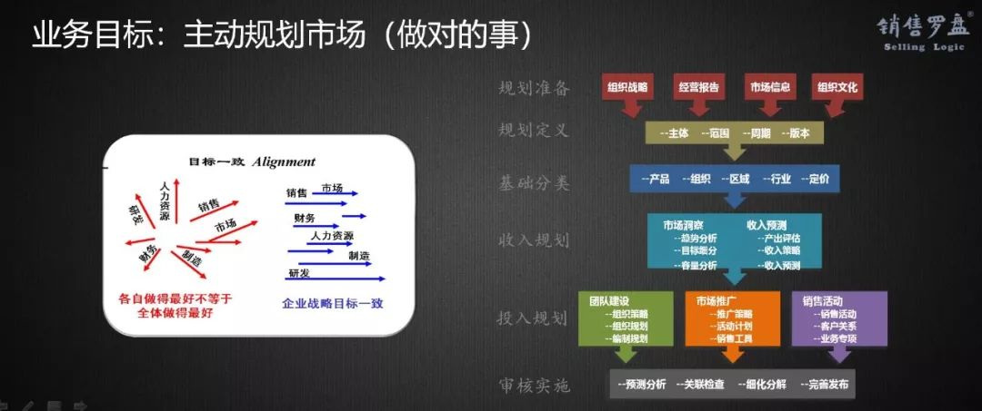 开这种会是有流程的,我们后来帮助很多企业干什么?给它们建立了一整套做营销规划的逻辑。帮一个央企,制定它百亿的销售份额,帮它怎么去做,然后根据它的组织战略、经营报告、市场、组织文化,甚至做这个规划之前一天他们是爬山和团建,完了之后每个人都要指定自己的主体,然后自己做一个版本开始。