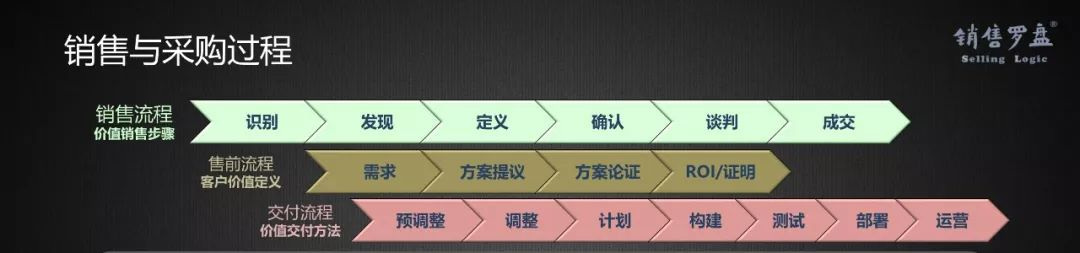 这是最早在西门子我看到过这个流程,后来其实华为的铁三角这个逻辑,上面是销售流程,中间是售前和解决方案流程,下边是实施流程,各位你知道为什么你不敢做解决方案客户?或者不敢做大客户吗?