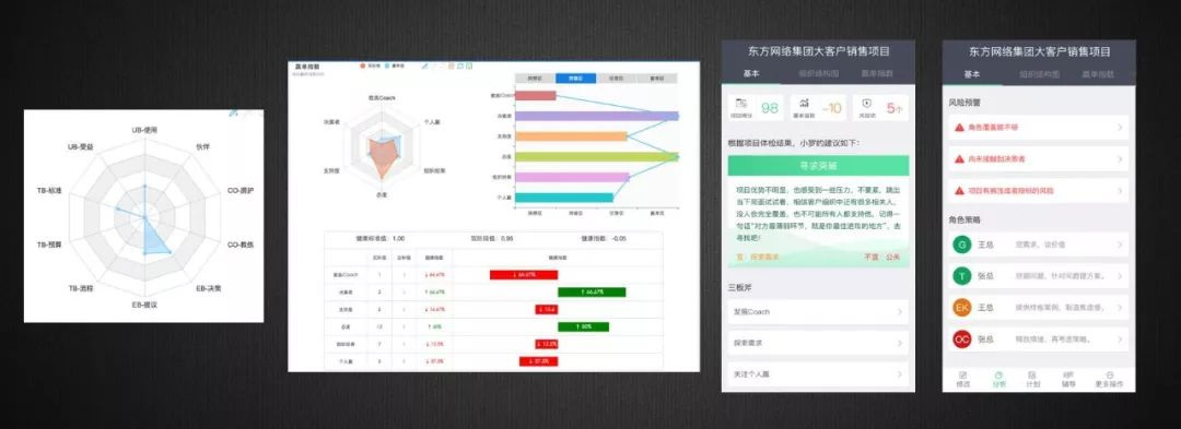 比如说我会去甄别一个行业的客户不同的角色,然后去扫描你赢单的角色覆盖度和丢单的角色覆盖度,去告诉你在什么阶段你必须覆盖什么,否则就有风险。在不同的阶段,这里面有六个关键指标,第一有没有Coach,所谓的内线和教练。