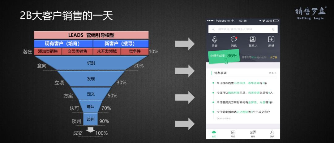 所以我们在这方面也在做一些工作,把最复杂的方法论嵌到后边,前边最简单,比如简单到什么程度?2B大客户销售的一天,好,你知道这一天他要干什么吗?