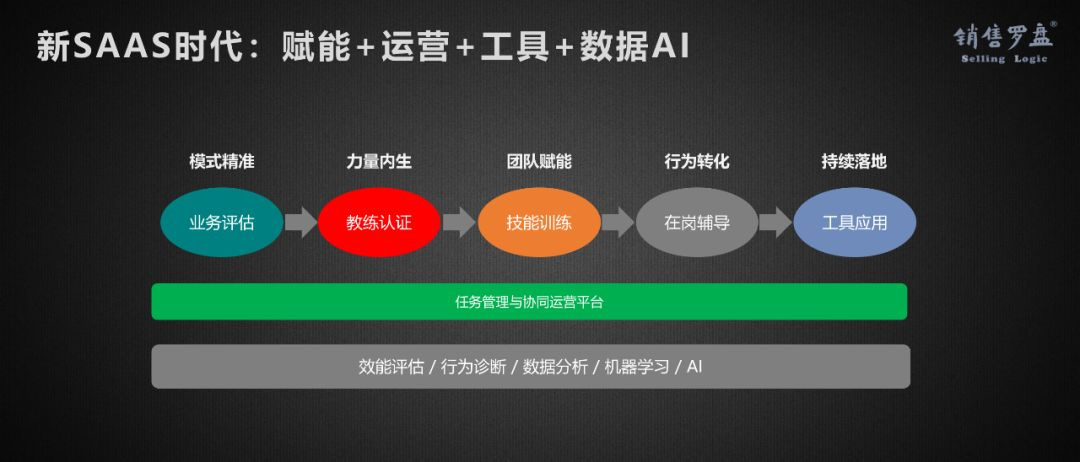 所以真正的SaaS,我觉得要根据自己的情况来决定,然后要有自己的客户赋能,然后要训练,然后再找辅导,然后工具应用,这是一个销售团队必备的要素,不可能给他一个SaaS或者找一个top sales就成功了。所以我们就任务管理的行为做新时代的SaaS赋能。