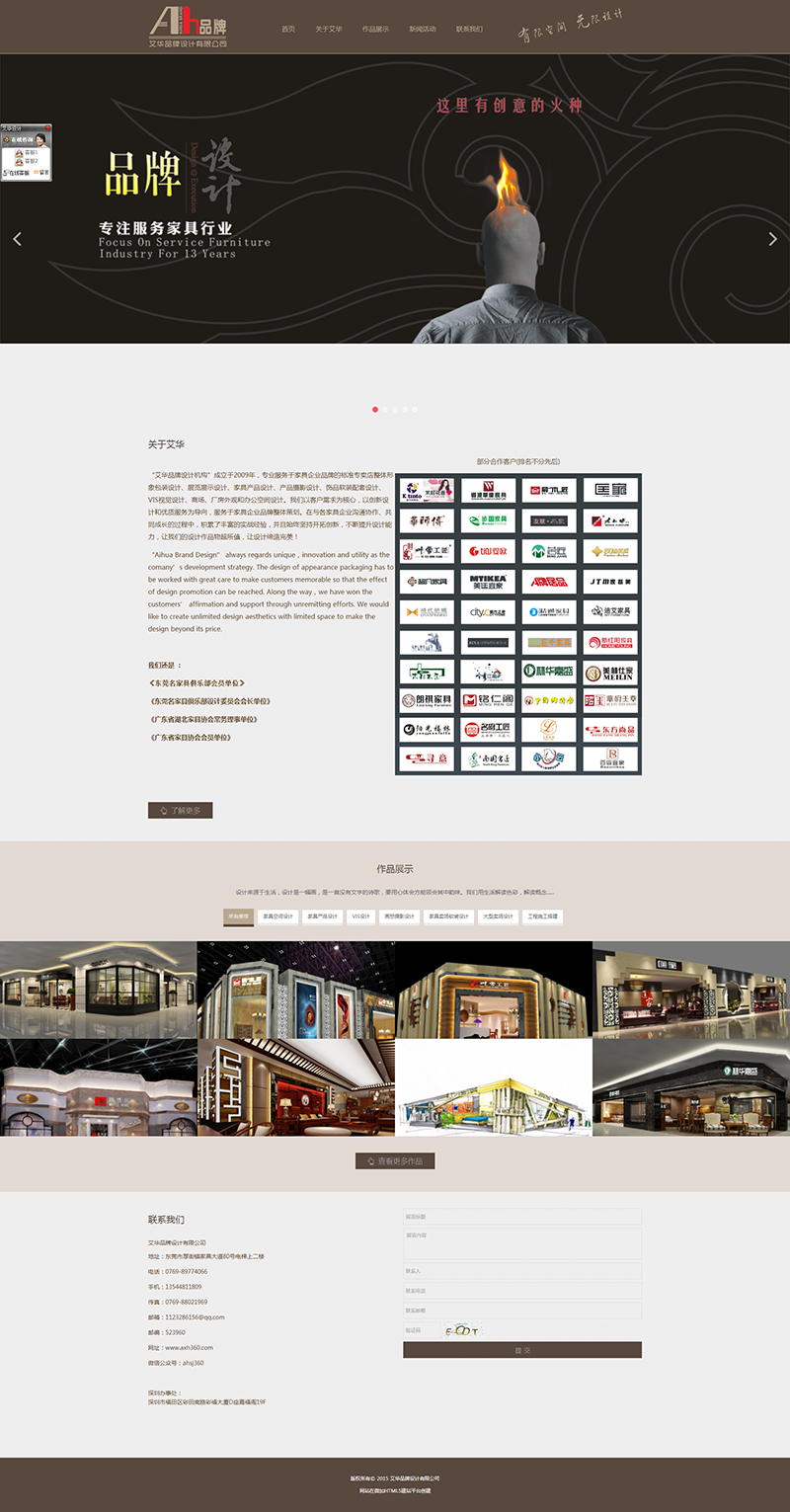 “艾华品牌设计机构”成立于2009年,专业服务于家具企业品牌的标准专卖店整体形象包装设计、展览展示设计、家具产品设计、产品摄影设计、饰品软装配套设计、VIS视觉设计、商场、厂房外观和办公空间设计。我们以客户需求为核心,以创新设计和优质服务为导向,服务于家具企业品牌整体策划。在与各家具企业沟通协作、共同成长的过程中,积累了丰富的实战经验,并且始终坚持开拓创新,不断提升设计能力,让我们的设计作品物超所值,让设计缔造完美!