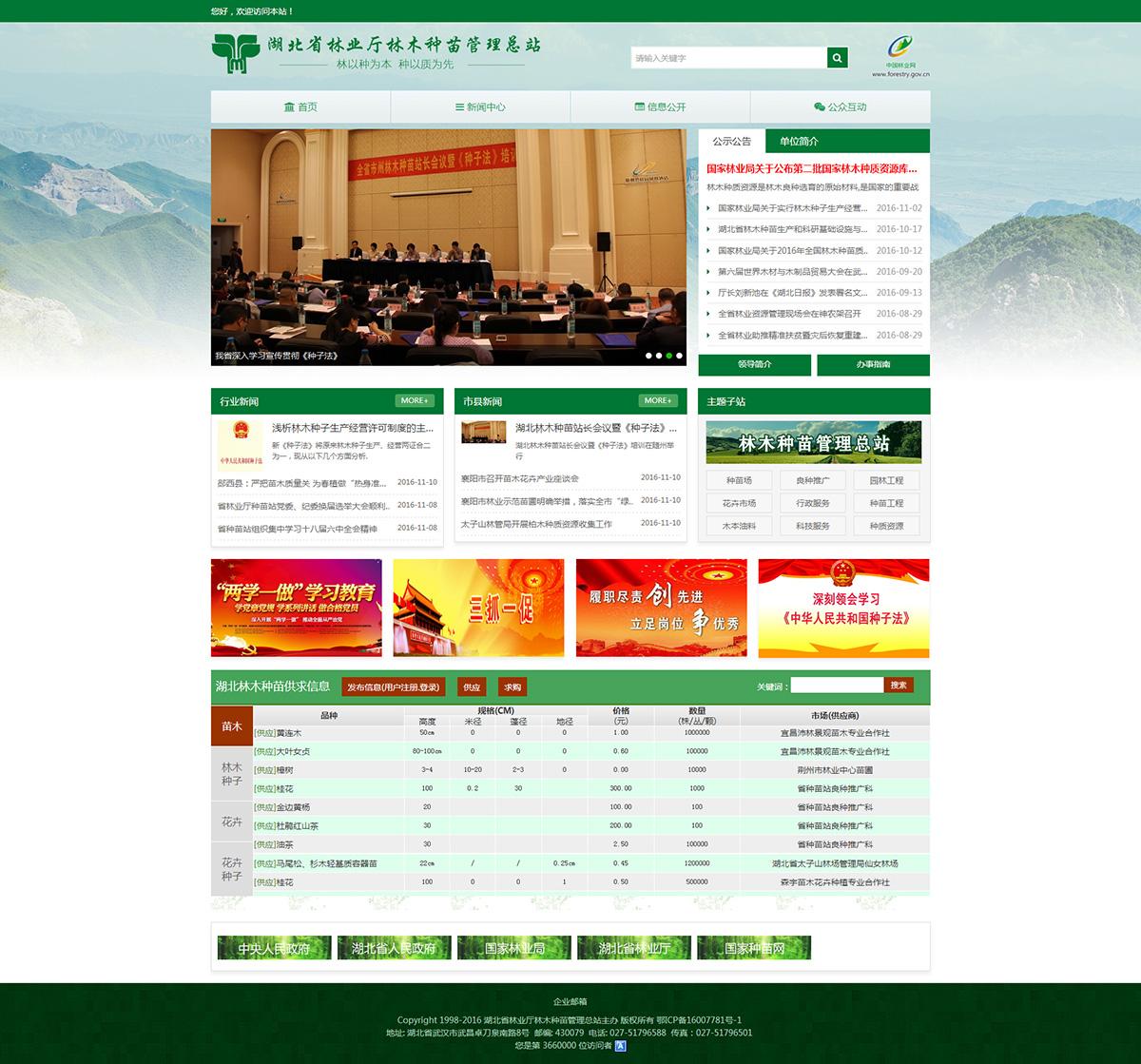 湖北省林业厅林木种苗管理总站成立于1980年,属湖北省林业厅直属事业单位,主要从事全省林木种苗的行业管理、花卉及林木良种生产、选育、推广等工作,承担全省林木种子质量监督、检验、仲裁及省林木品种审定委员会办公室日常工作,并受省林业厅委托,依照《中华人民共和国种子法》等有关法律、法规,从事全省林木种苗行政执法和国家林木种苗重点工程项目可研报告的初审及作业设计的批复。