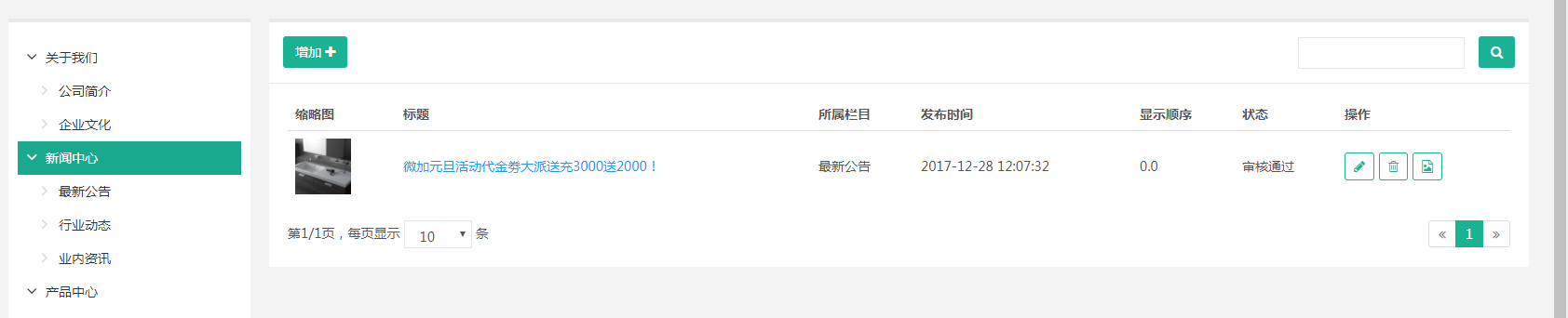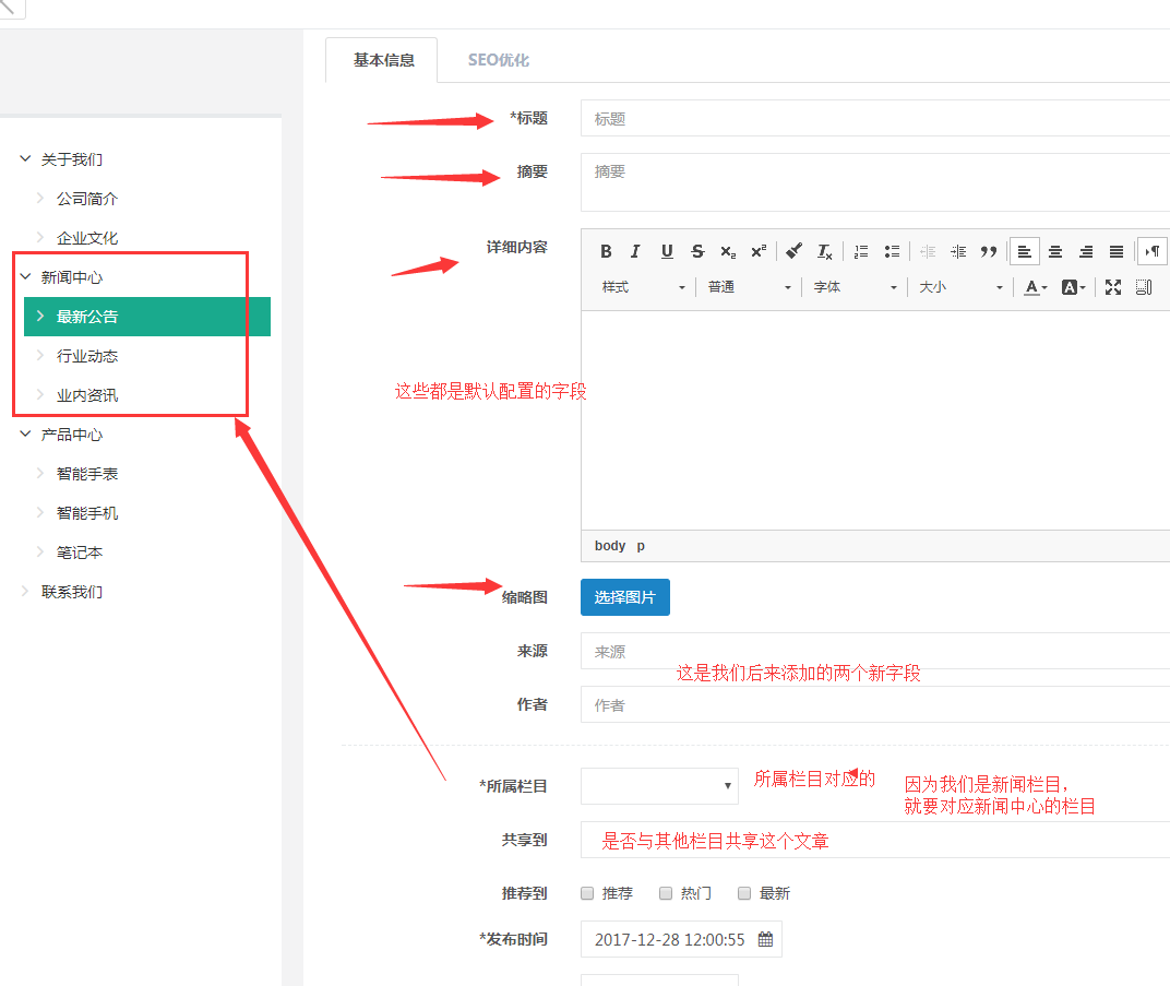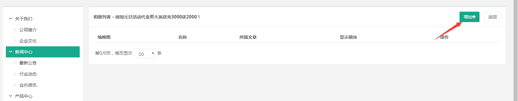 以一种列表的展示状态。我们在新闻中心栏目设置的功能是新闻功能,那么他就会以新闻功能的字段配置数据。