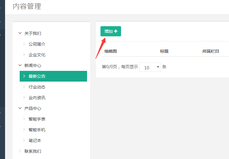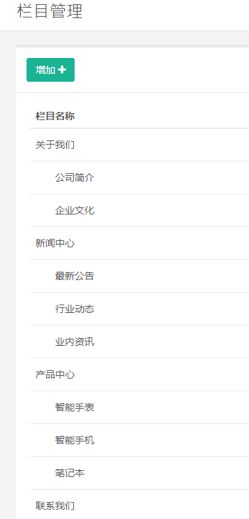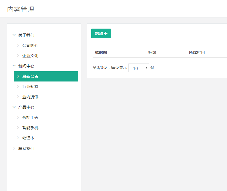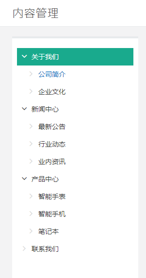 当我们在栏目管理中配置什么页面,那么内容管理也会根据栏目的配置变化而变化。