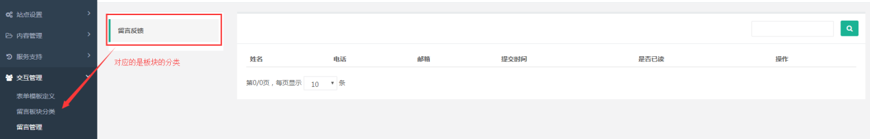 留言管理就是访问我们网站的时候,用户提交表单反馈的信息回到我们这个留言管理处。
