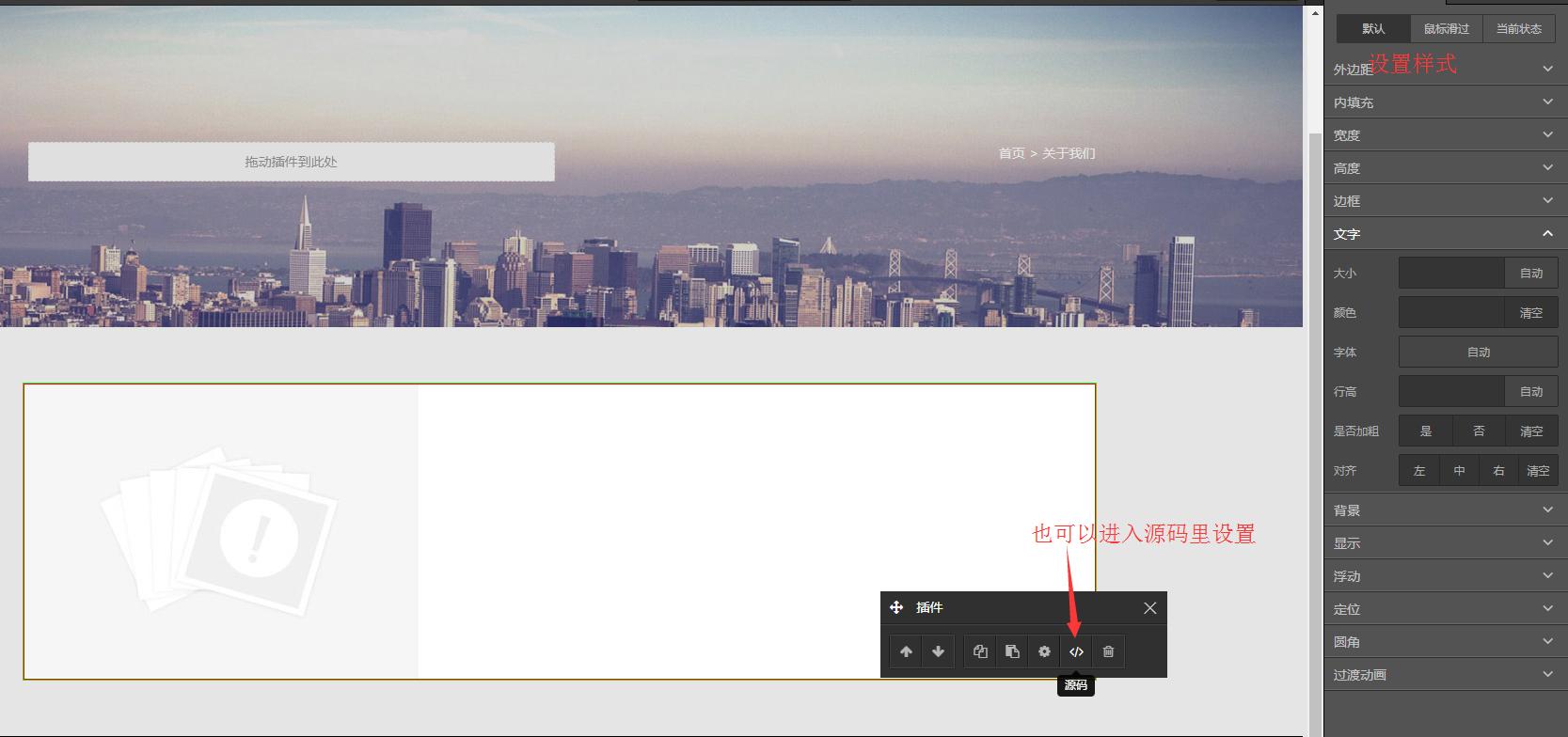 3:图片插件也有一个源码按钮,用来设置这个图片的样式: