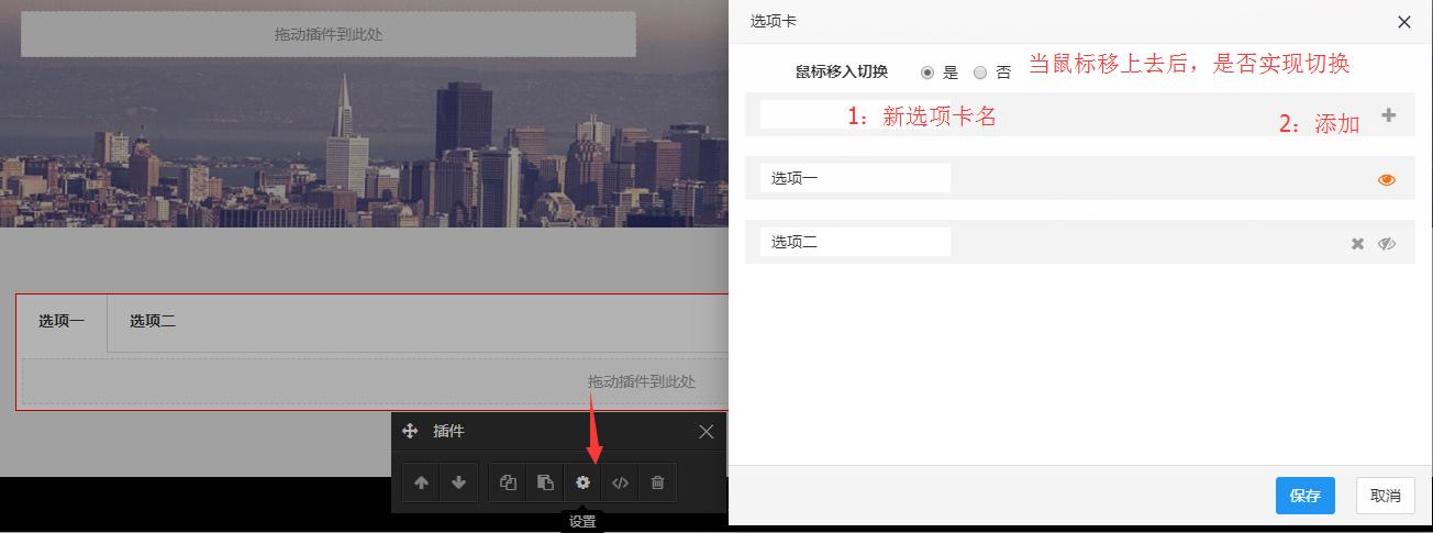 我们可以点击设置按钮,这个按钮专门设置选项卡的数量跟文字,切换的展示方式。
