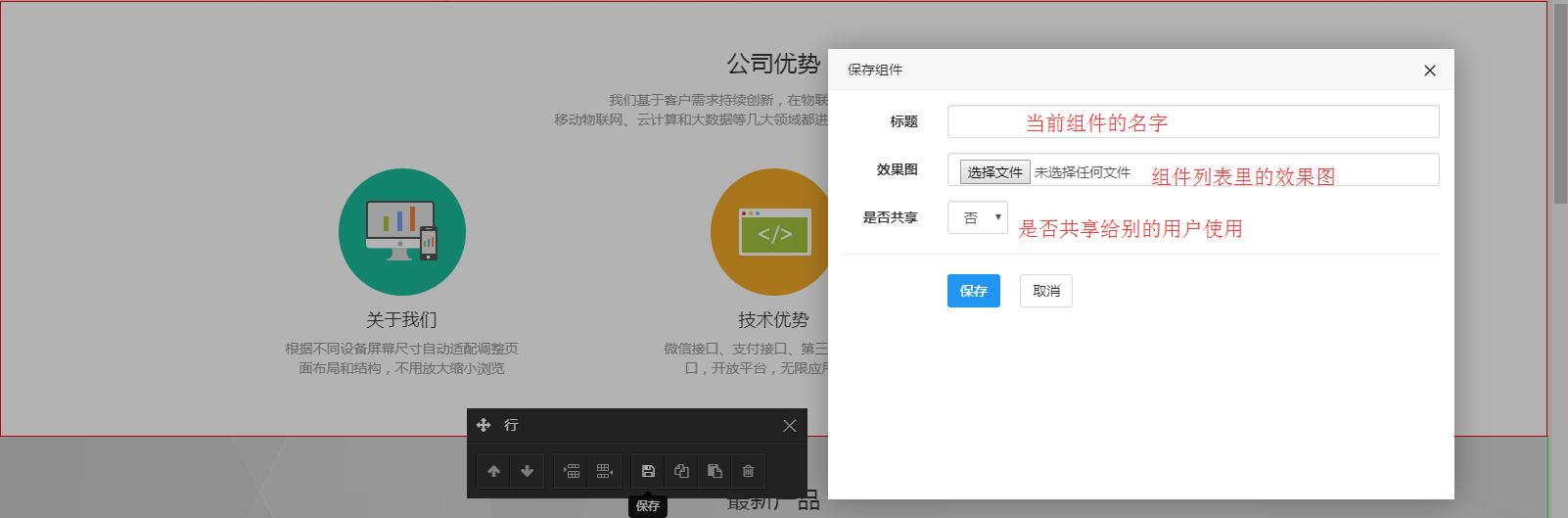 当我们自己做好的,在制作页面中经常用到一块区域,就可以将这一块保存到组件里去,方便下次直接拉出来使用,不需要重新制作。